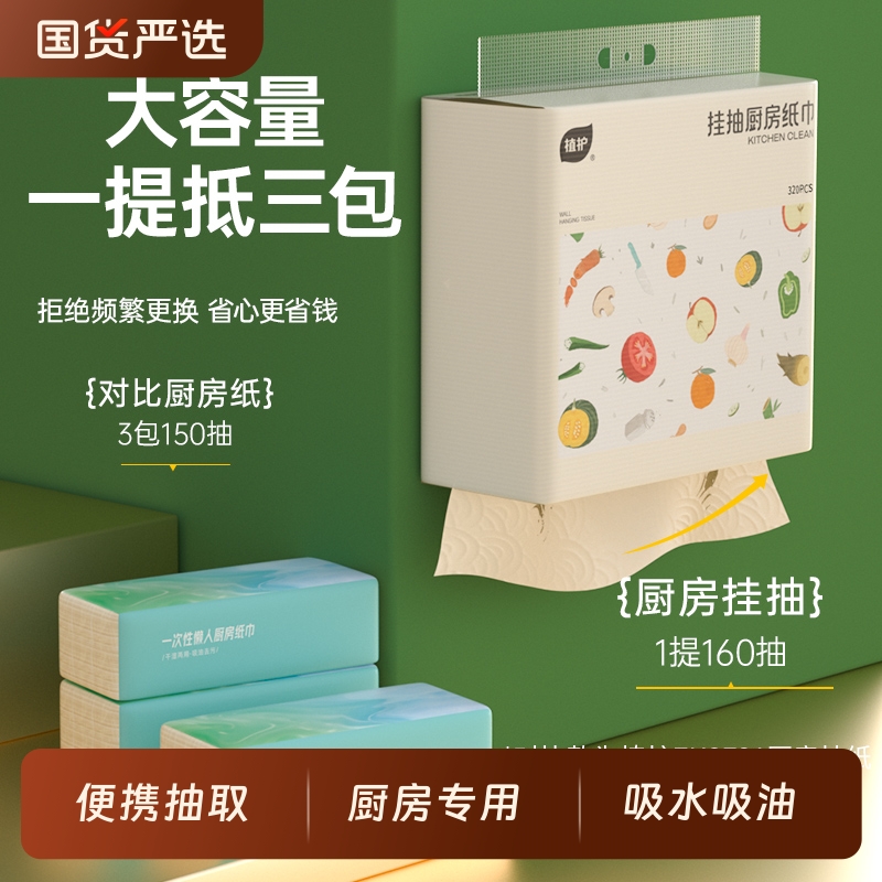 植护厨房用纸悬挂式一次性擦手厨房纸食物专用吸水吸油纸抽取式