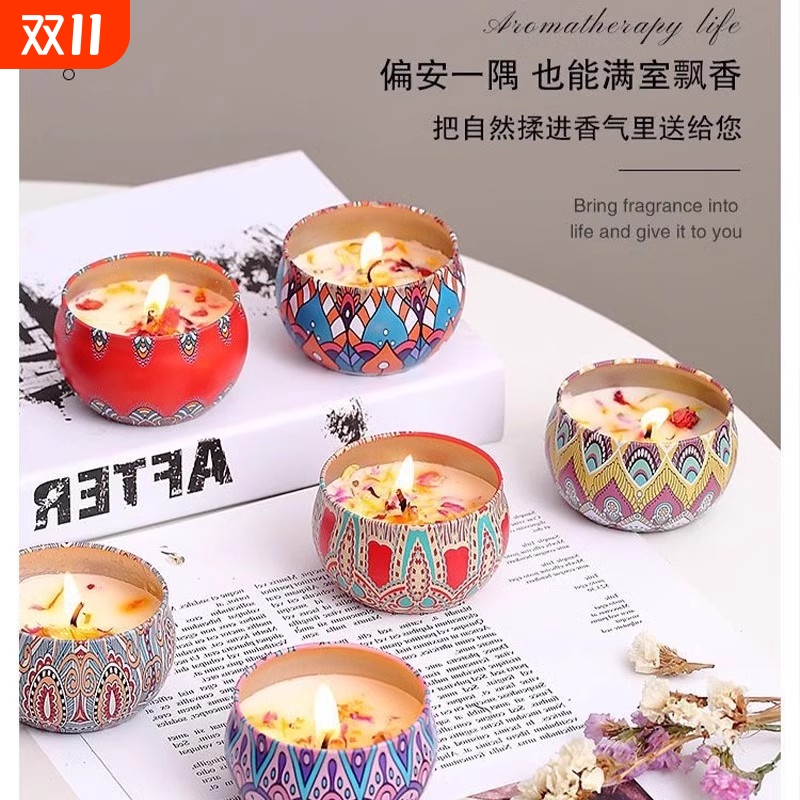 现货香薰蜡烛套装伴手礼盒大豆蜡香氛铁盒生日氛围卧室安神茉莉花