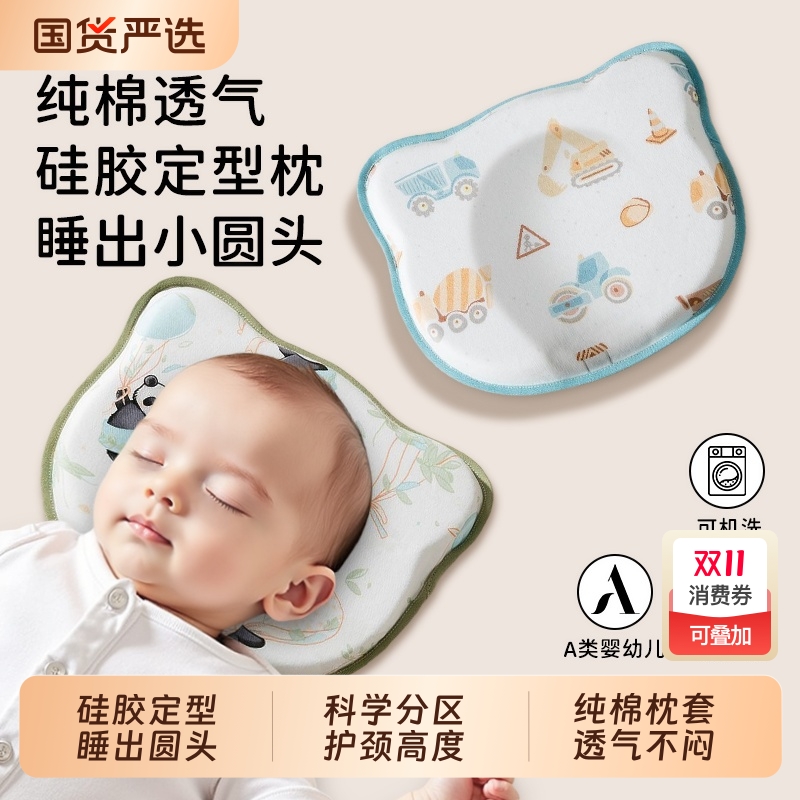 婴儿定型枕硅胶枕头0到6个月新生幼儿宝宝睡矫纠正头型防偏头神器