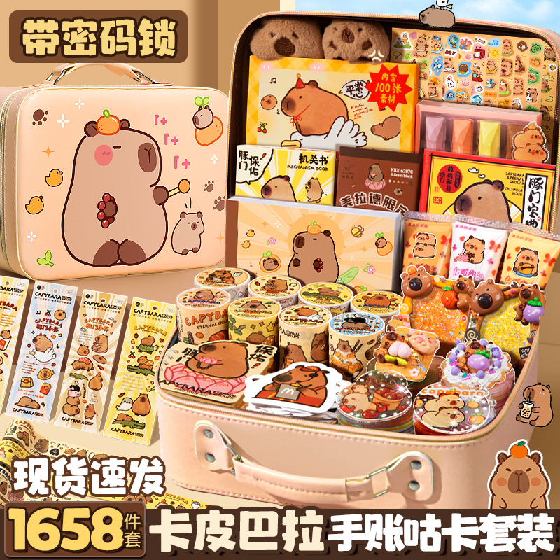 热销手账套装礼盒手账本女孩可爱玩具手帐本女生儿童卡皮巴拉文具