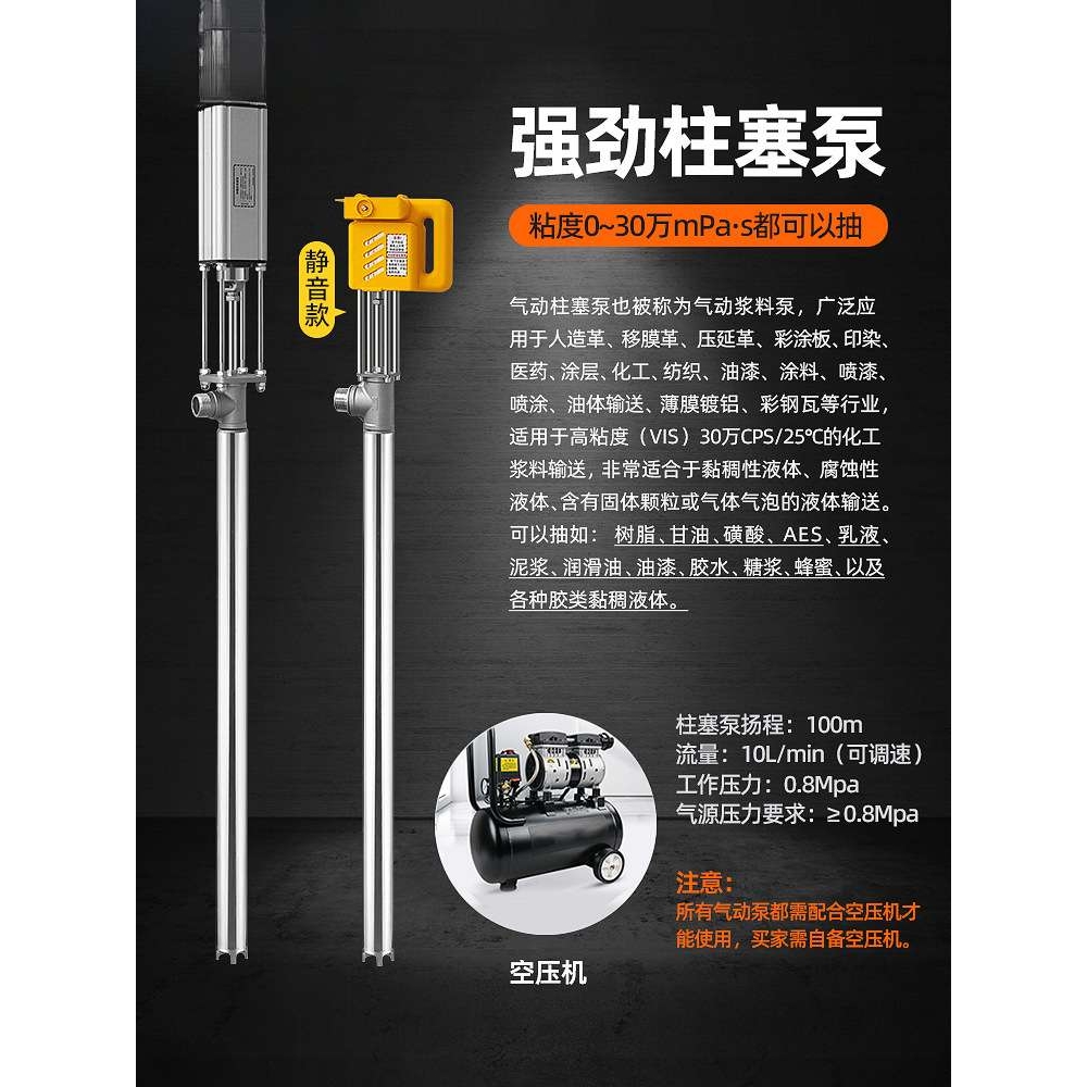 气动静音抽液泵超粘超稠胶水磺酸AES蜂蜜柱塞泵 溶剂酒精汽油防爆