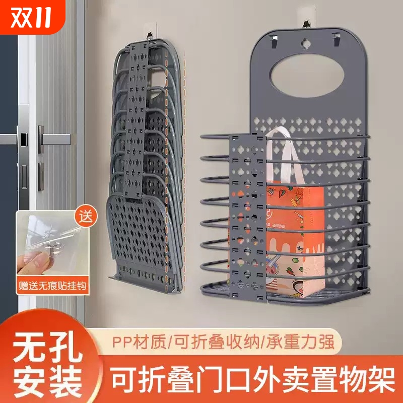 家门口外卖置物架篮筐入户门可折叠收纳篮子免接触快递放门口架子