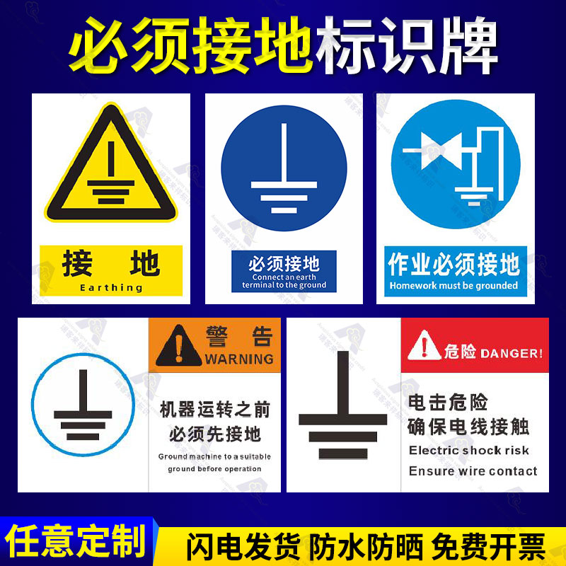 现货速发作业必须接地标识牌机器设备运转危险电线接触已接地警示