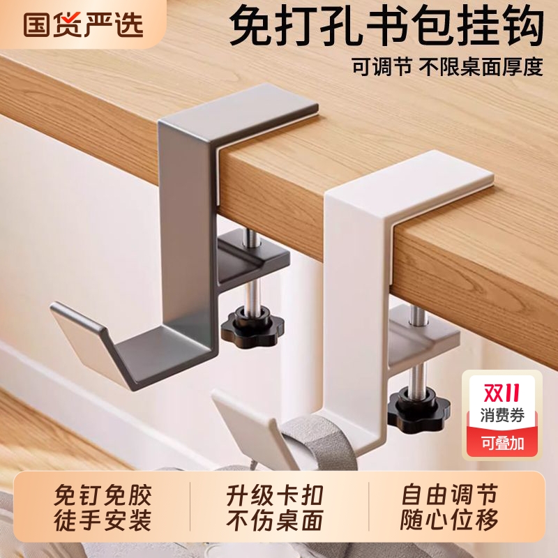 整理师推荐书包挂钩神器免打孔强力承重无痕学生书桌边挂钩可调节