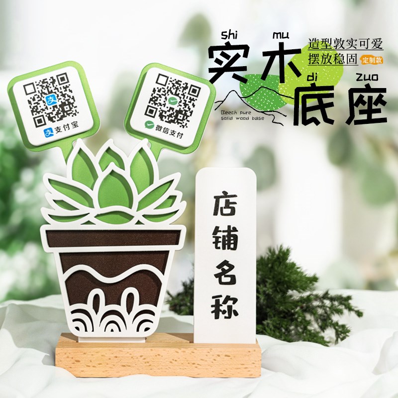 热销插花收付款二维码展示牌收款摆台收银收钱制作支付宝扫码加好