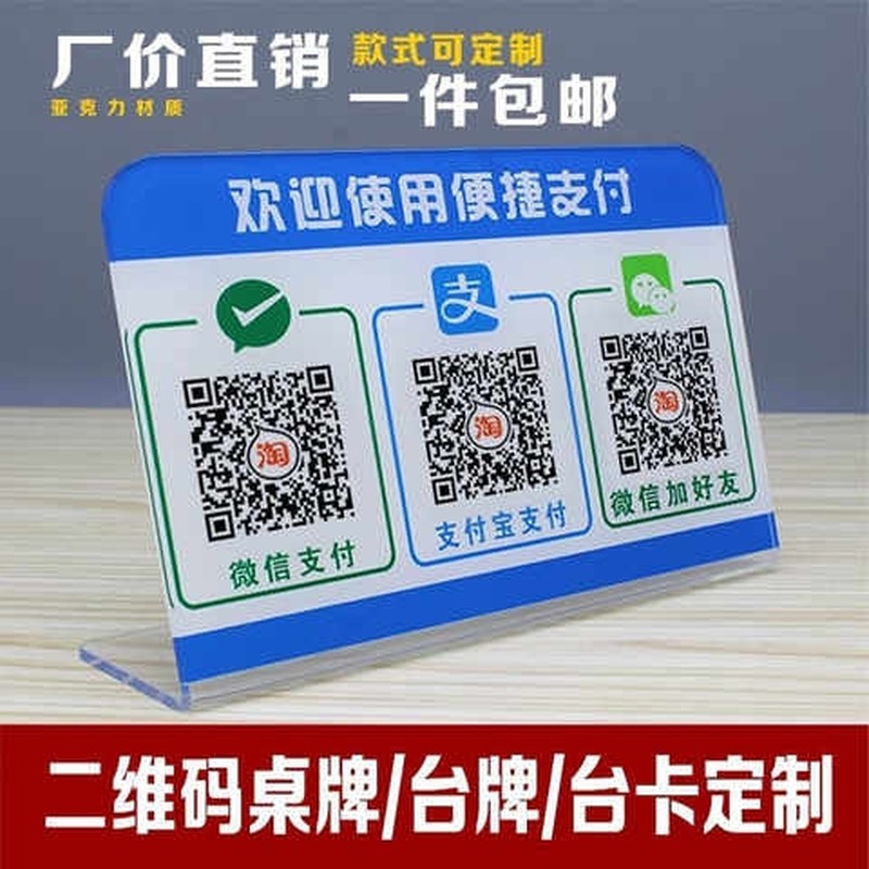 亚克力收付款二维码展示牌支付宝收款扫码店铺添加好友打印制作收