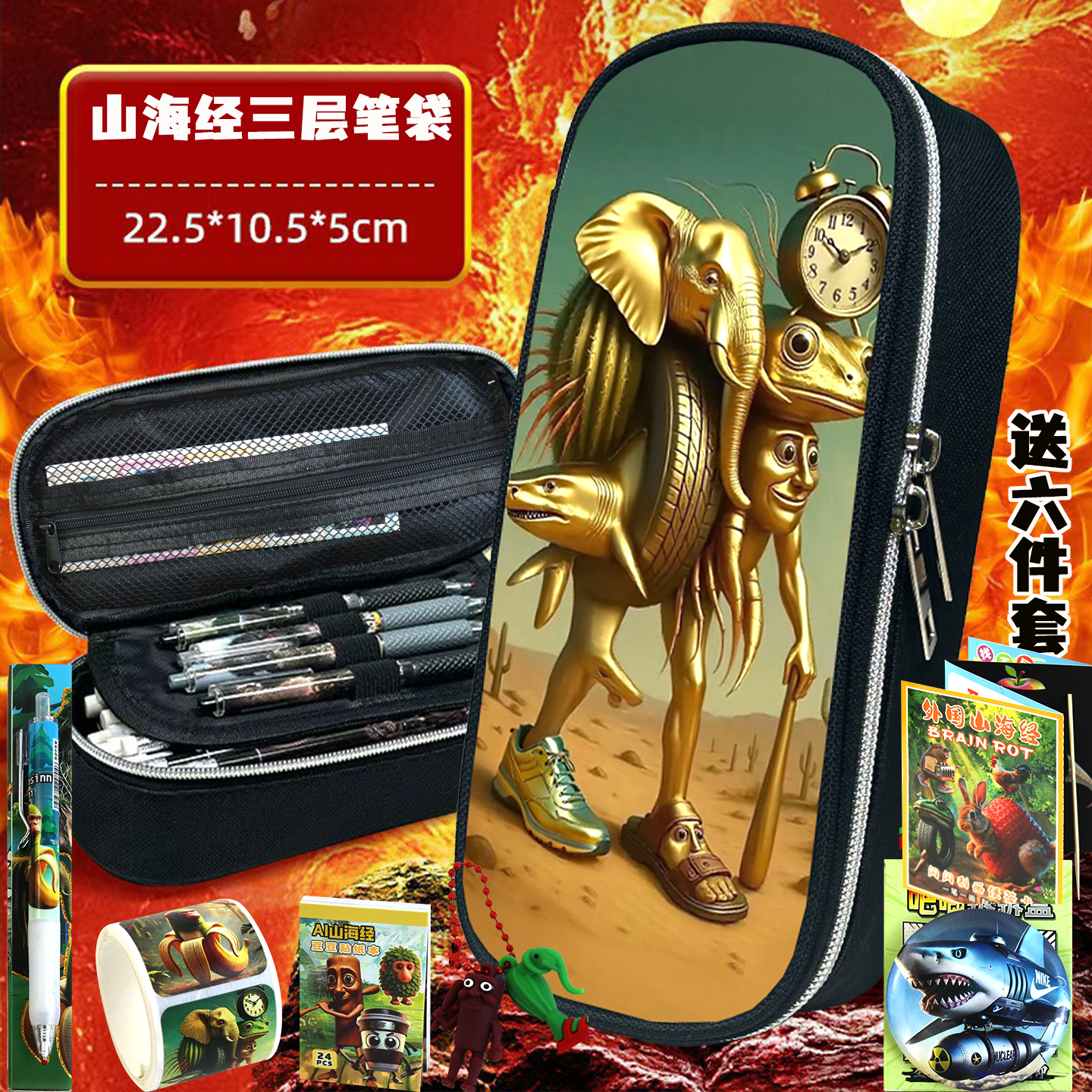 美国外国黄金合体山海经笔袋男孩卡通新款小学文具袋铅笔盒大容量