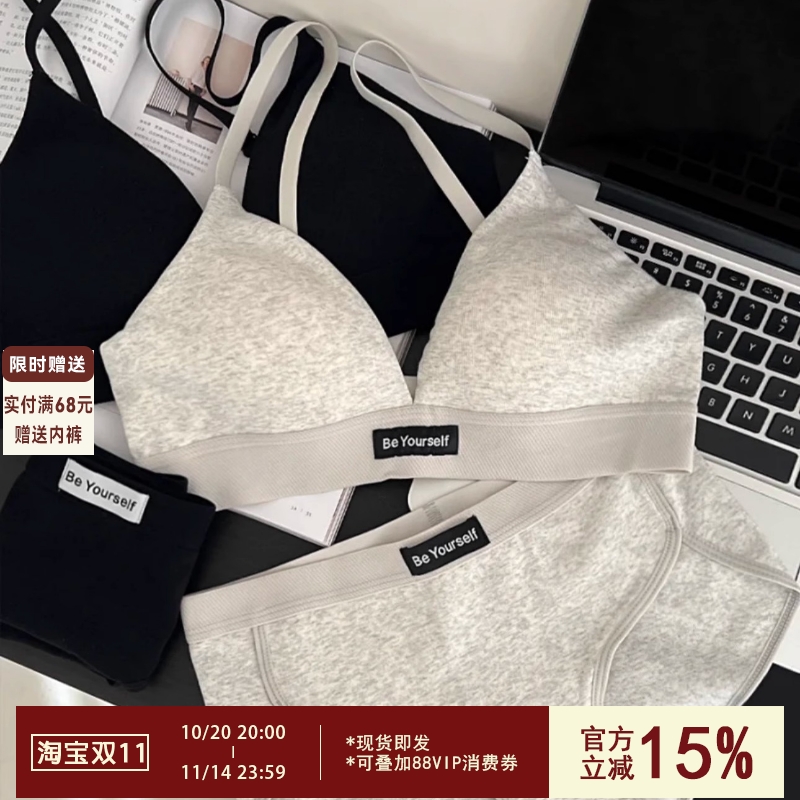 法式三角杯无钢圈内衣女大胸显小胸聚拢性感文胸套装2024新款爆款
