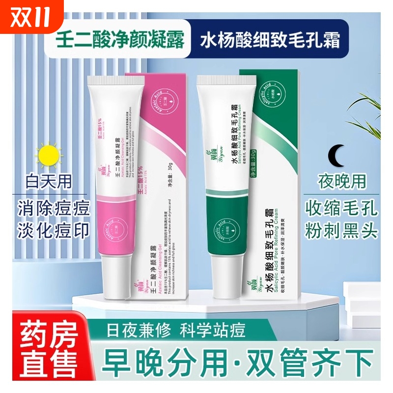 壬二酸水杨酸15%仁任二凝胶和正品去黑头淡化祛痘印zj粉刺收缩