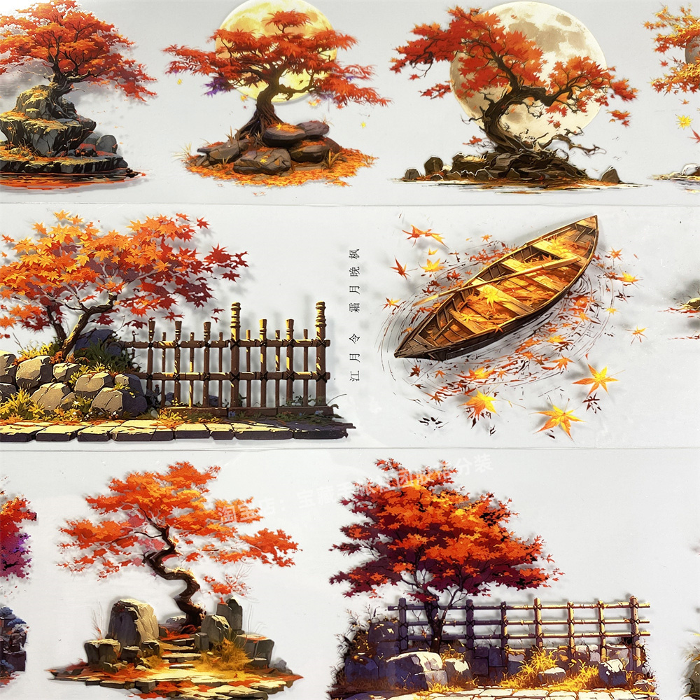 手帐分装胶带s96霜月晚枫江月令红树叶PET古风素材账流麻diy