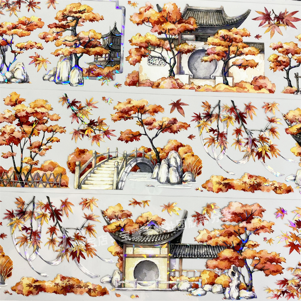 手帐分装胶带s30枫晚林BoBo鱼红树叶桥PET古风素材账流麻贴