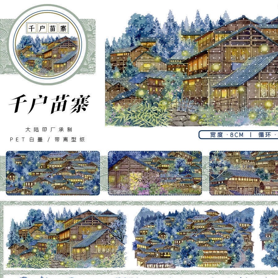 手帐分装胶带千户苗寨zero城小屋夜晚灯古风PET素材账手机壳贴