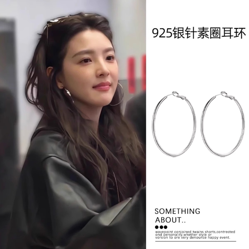 难哄章若楠同款素圈大圈圈耳环2025新款爆款夸张独特纯银耳圈耳饰