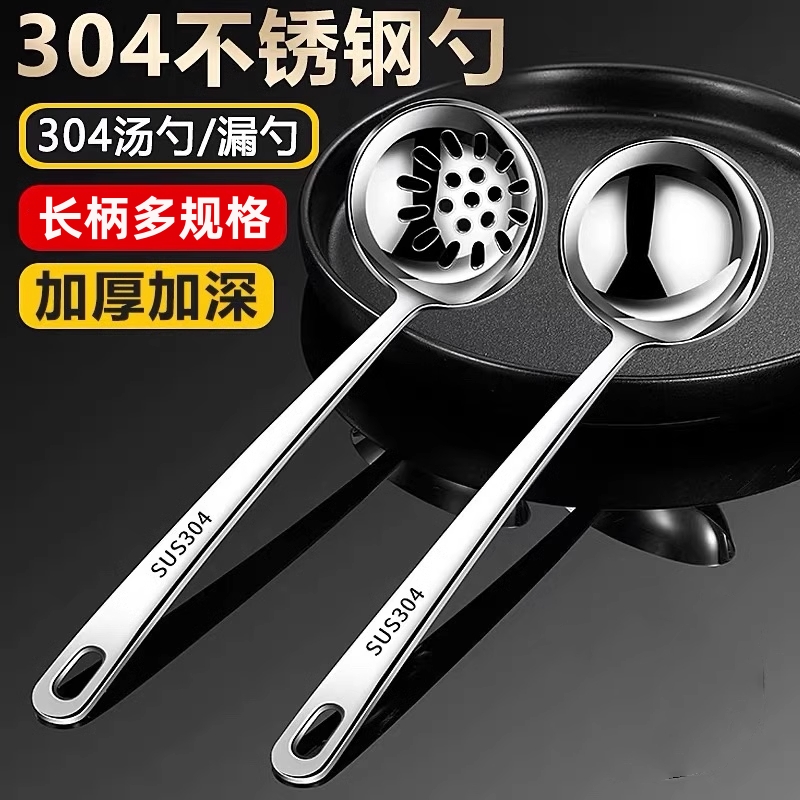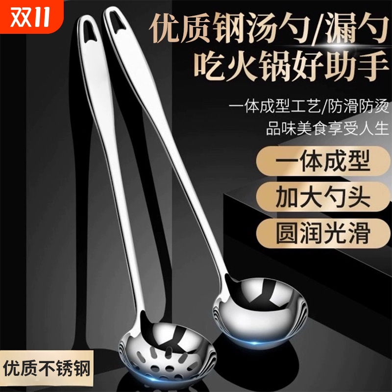 勺子家用大号商用火锅汤勺漏勺加厚不锈钢家用盛汤匙长柄大号调羹