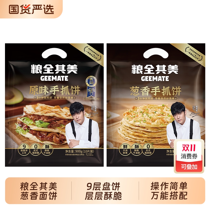 【顺丰】2袋粮全其美原味葱香手抓饼 半成品早餐手抓饼面饼皮煎饼
