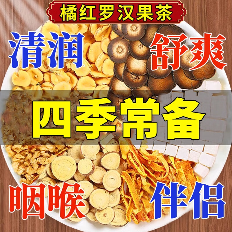 橘红罗汉果清润茶正品旗舰店甘草陈皮茯苓胖大海橘红果痰化咳止包
