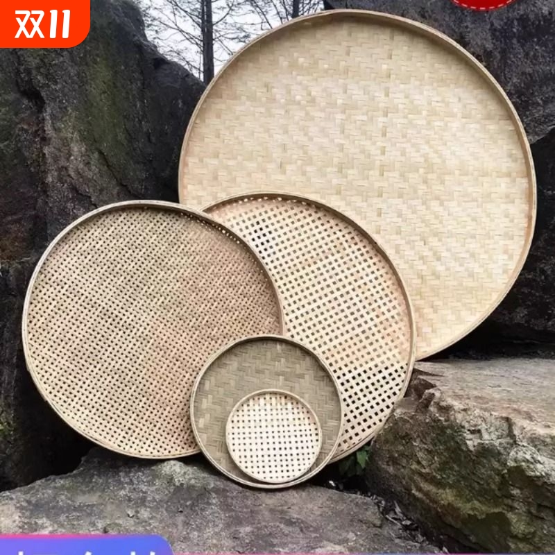 竹编簸箕有孔米筛子家用竹匾竹筐圆托盘晾晒绘画装饰竹制品竹篦子