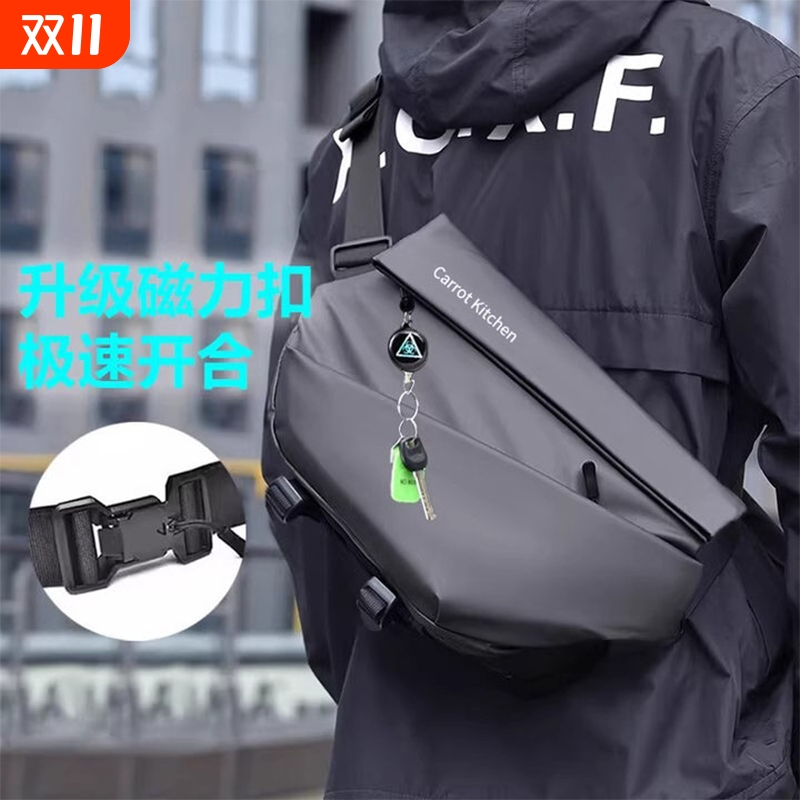 磁吸扣男士斜挎包大容量机能胸包