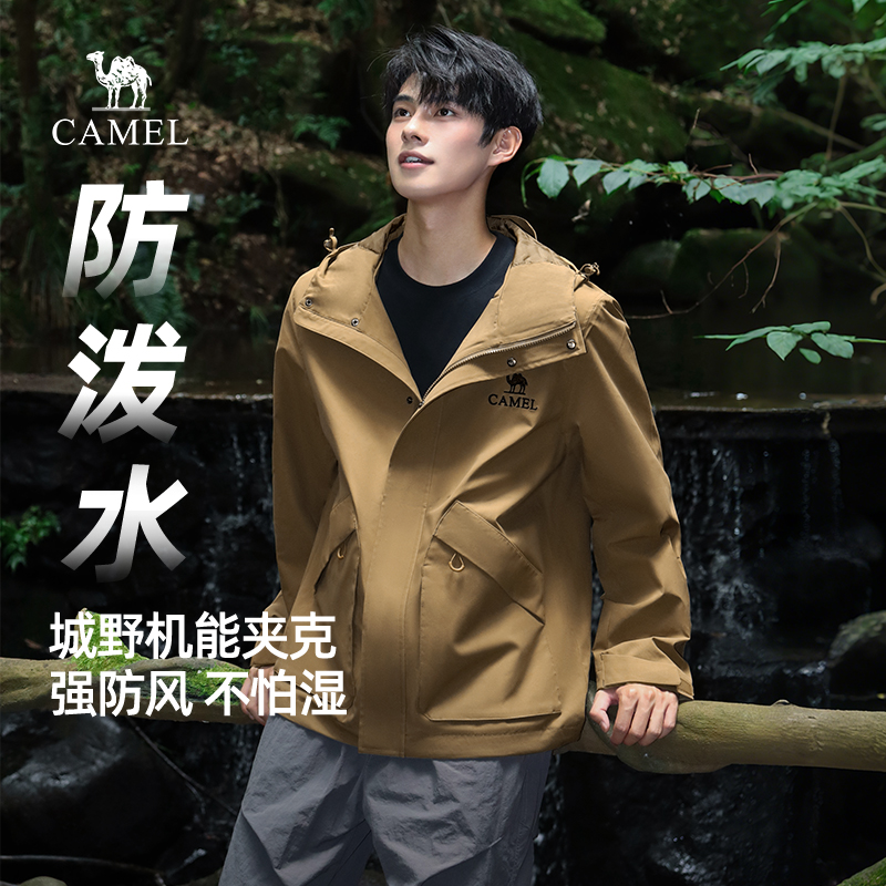 骆驼男装机能夹克工装外套2025春秋款户外风衣旅行服徒步登山服男