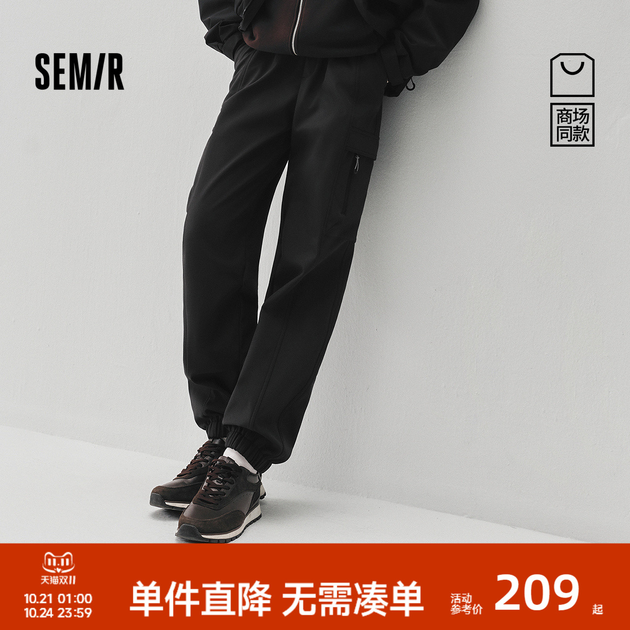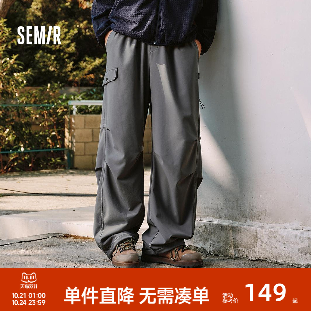 [商场同款]森马休闲裤男宽松直筒裤2024冬新款户外机能风裤子纯