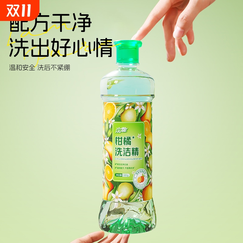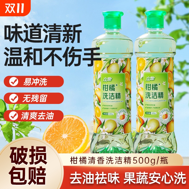 500ml柑橘洗洁精温和不伤手厨房餐饮去油去污清洁剂洗涤剂实惠装