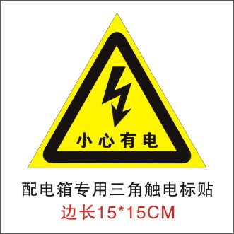 小心有电工厂车间设备机器警告标志安全标示标签当心触电三角标识