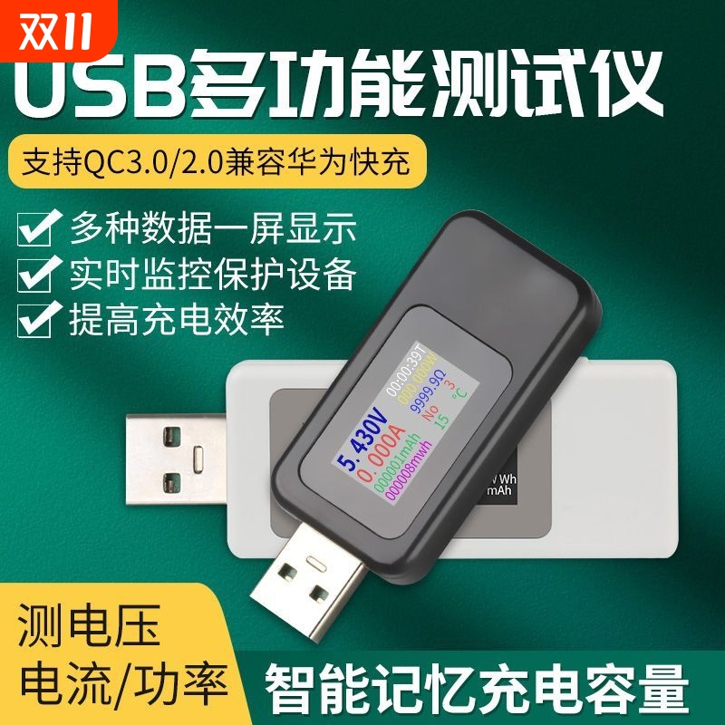 充电电压电流表检测仪手机充电器充电线电压功率测试仪高精度数显