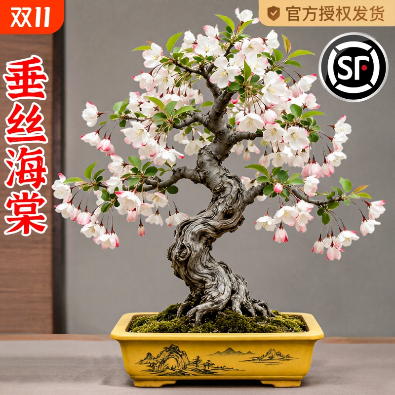 垂丝海棠花盆栽老桩带花苞四季开花盆景树苗室内鲜花卉绿植物好养