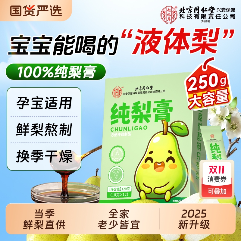 北京同仁堂秋梨膏纯梨膏老人儿童泡水喝润肺止咳送老师秋梨膏250g