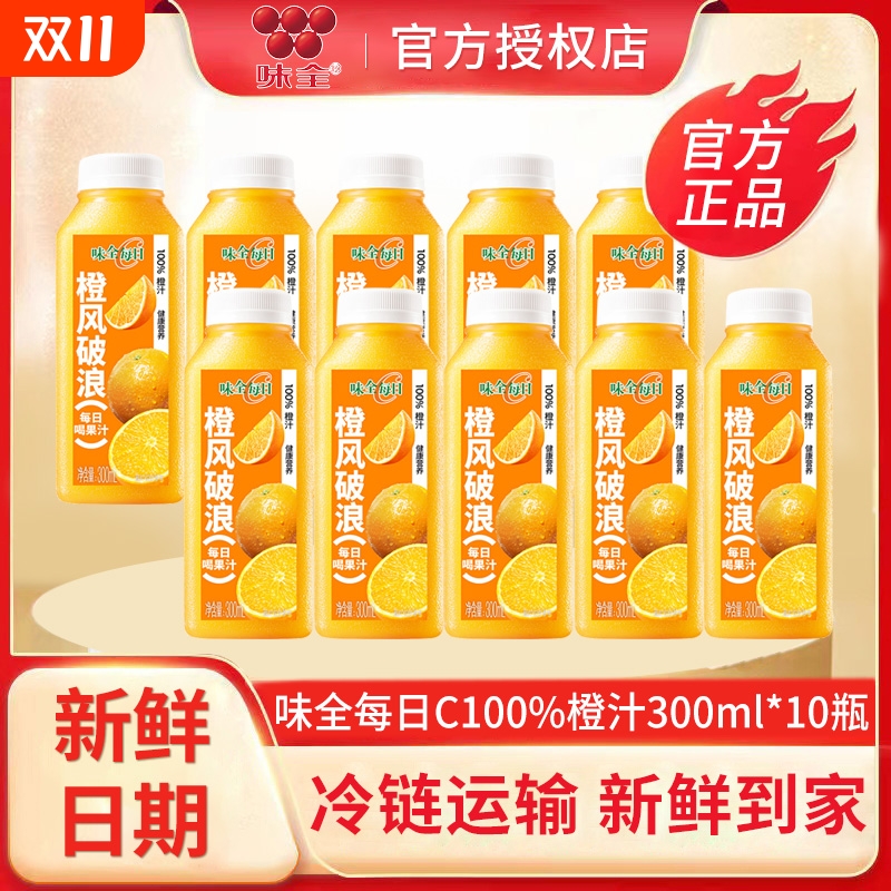 味全每日C果蔬汁橙汁100%常温型300ml*10瓶新鲜果汁健康