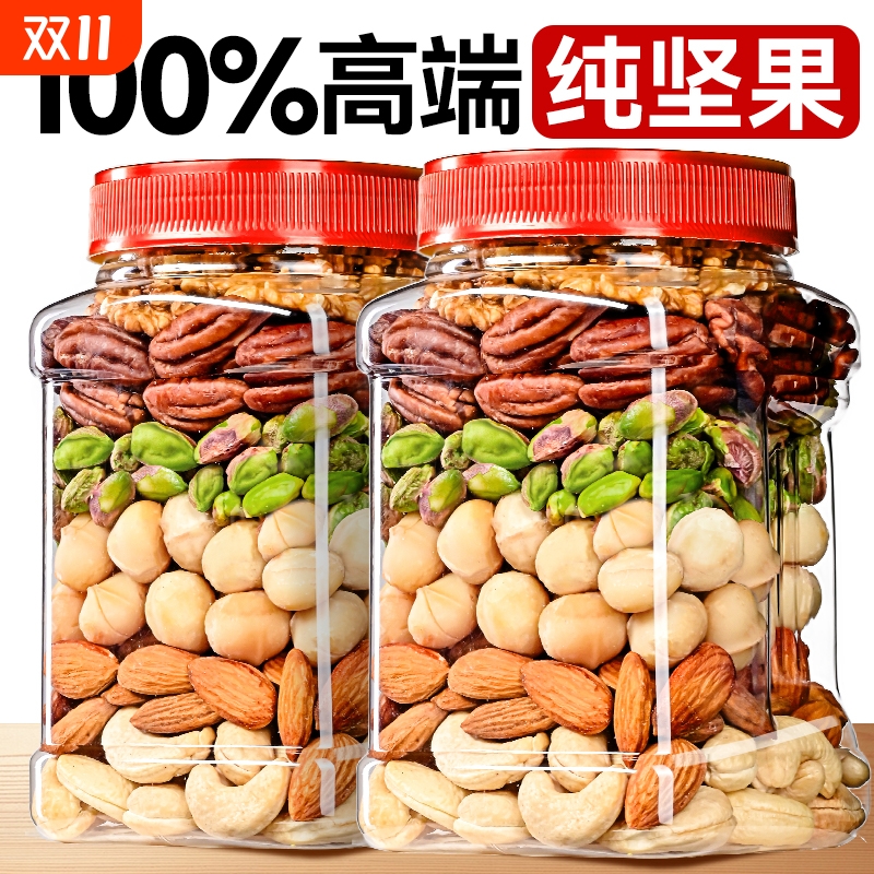 每日坚果混合干果100%纯坚果仁综合果仁500g罐装孕妇儿童年货