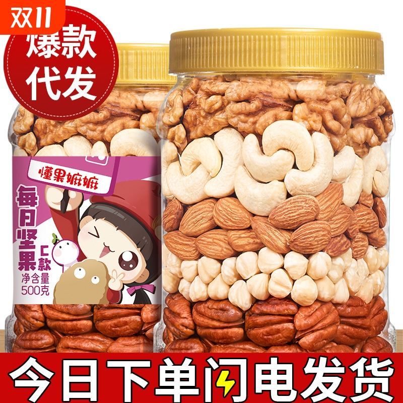 每日坚果混合综合干果仁大罐装500g纯坚果小包干果休闲早餐零食