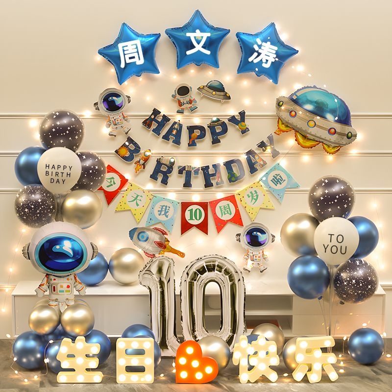 太空宇航员生日场景布置装饰10岁男孩气球派对氛围仪式感背景墙