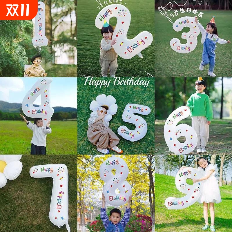 数字气球派对场景布置装饰儿童生日蛋糕户外拍照氛围道具宝宝周岁