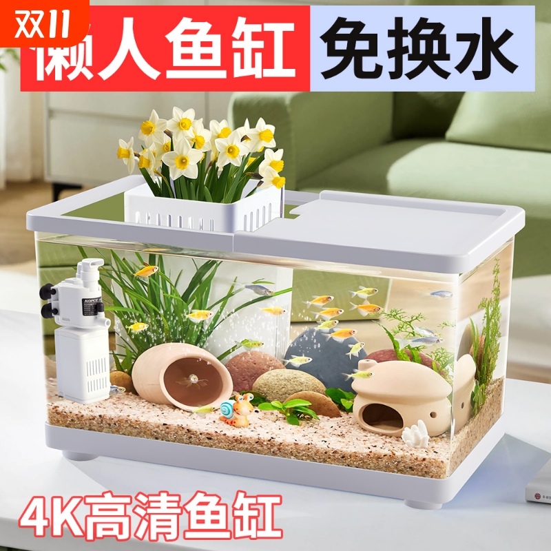半紫半红桌面方形生态鱼缸