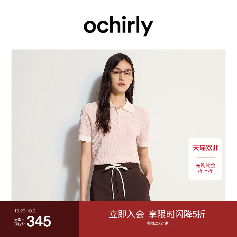 OCHIRLY欧时力撞色翻领短袖针织