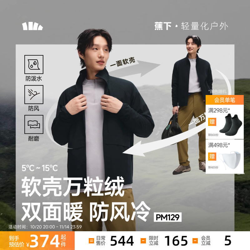 蕉下男士双面软壳衣冲锋外套抓绒衣防风防泼水加绒摇粒绒夹克秋冬