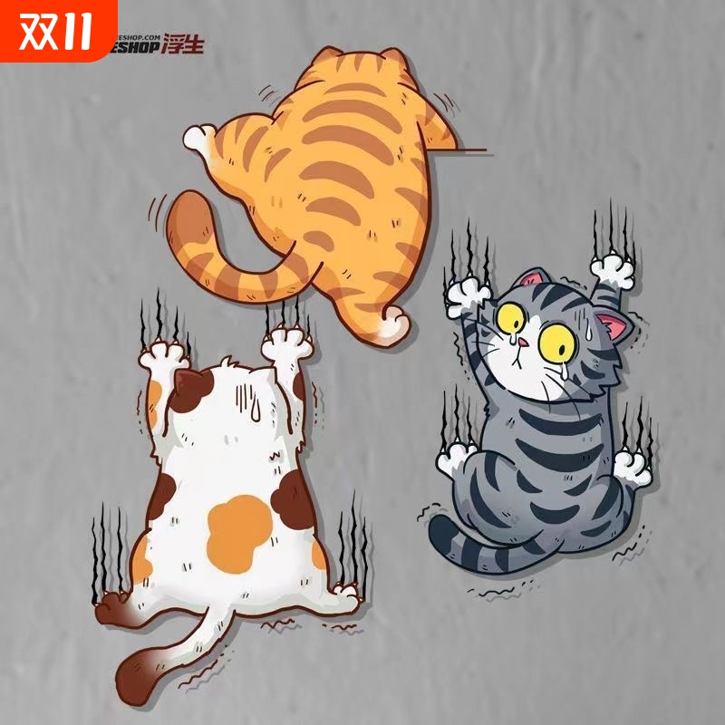 个性搞笑宠物猫咪车贴抓痕汽车贴纸车身划痕遮挡贴摩托车卡通贴画