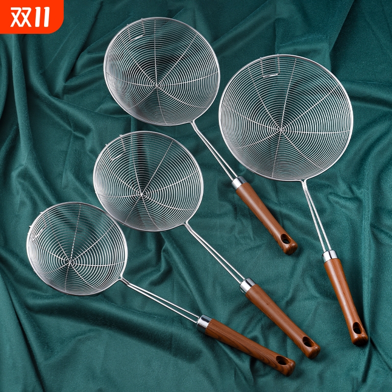 304不锈钢漏勺大号火锅捞勺家用厨房过滤网油炸捞面饺线漏仿木柄