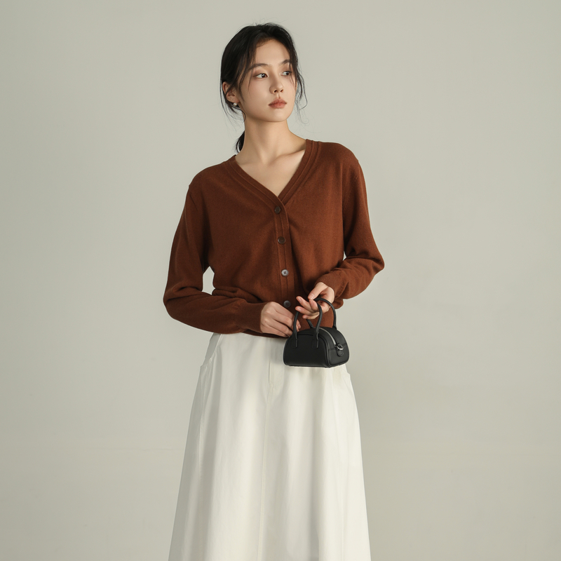 YINER音儿女装秋季法式优雅V领美丽诺羊毛羊绒混纺针织开衫
