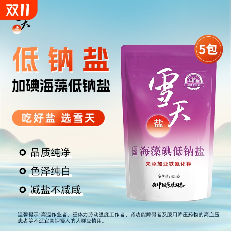雪天盐海藻碘低钠食用盐烹饪调味提鲜加碘家庭食用盐家用低钠盐