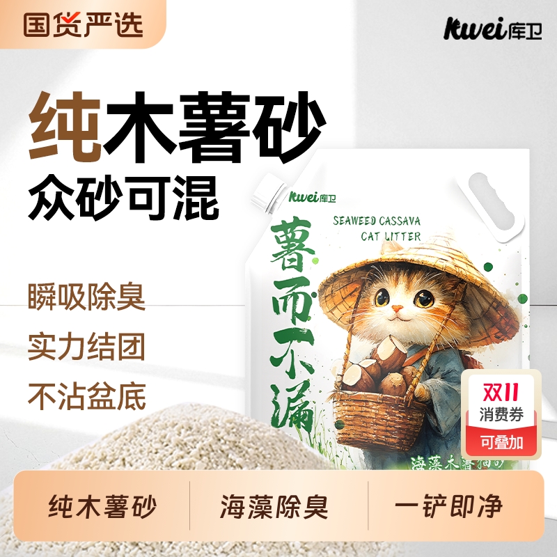 库卫纯木薯猫砂海藻除臭植物砂几近无尘不沾底官方正品易结团包邮
