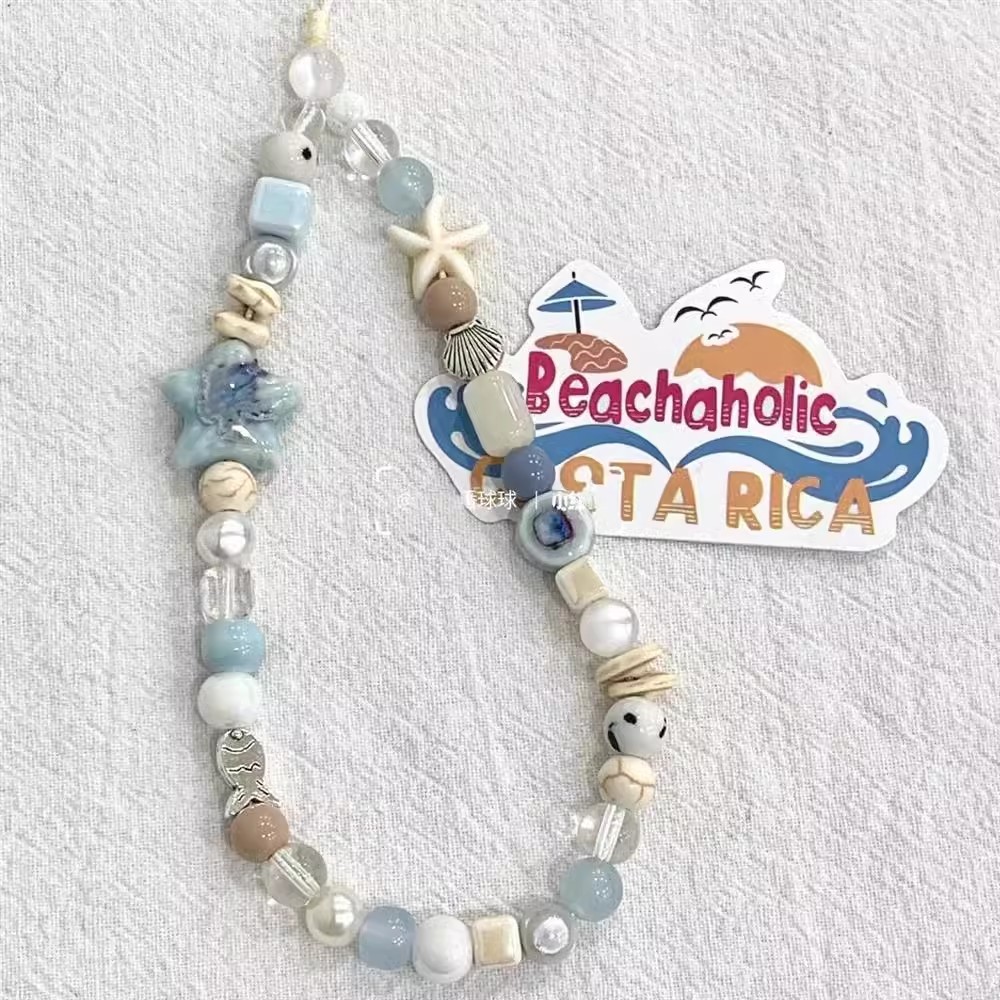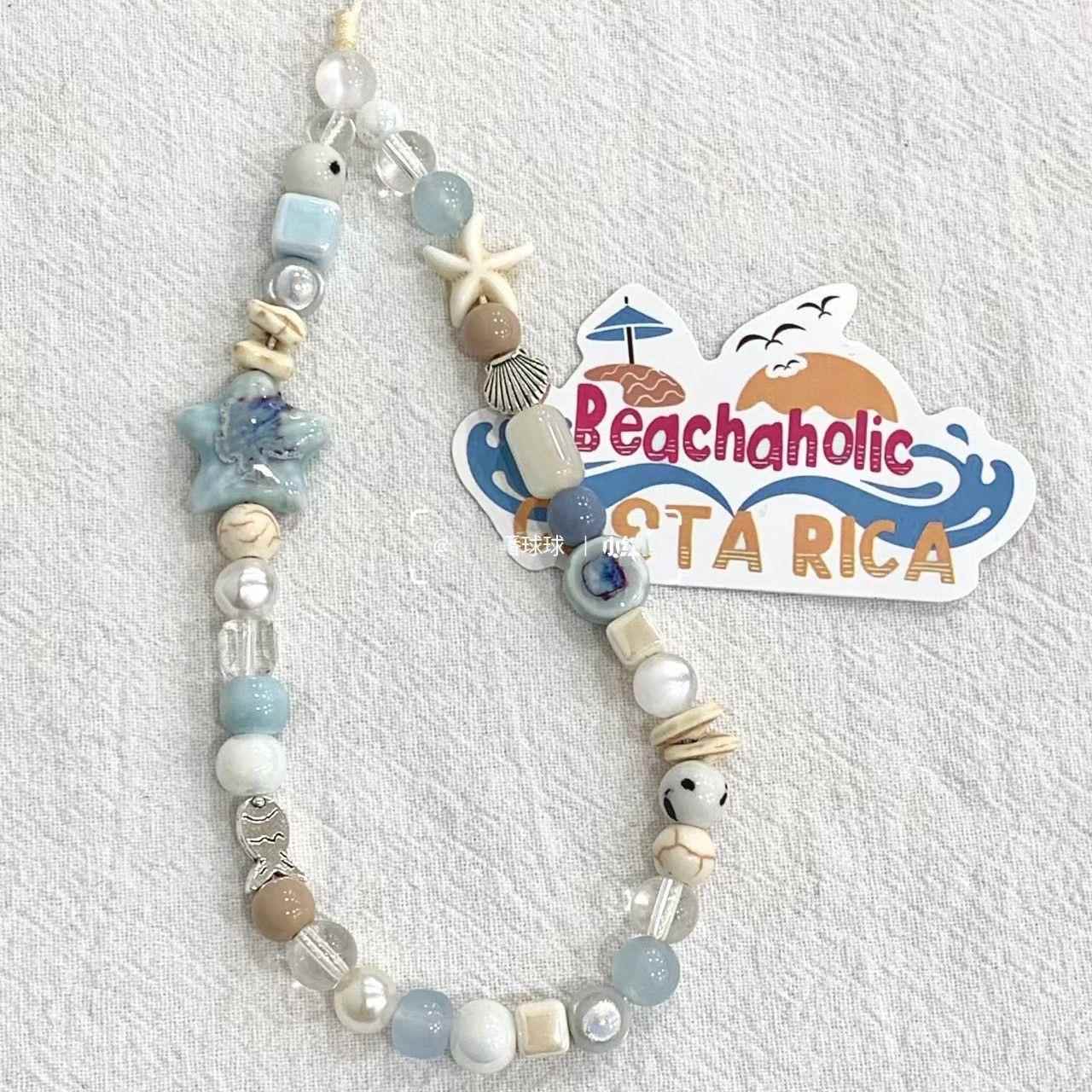 海风星星贝壳手机链手工串珠手腕挂绳ccd相机短款挂链包包清新di