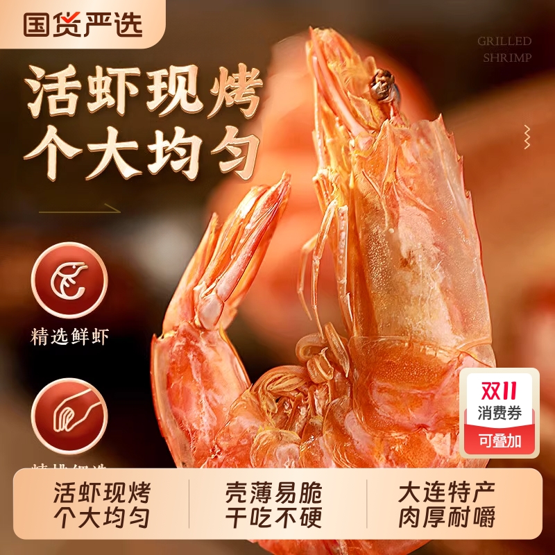 即食碳烤大号虾干干货海鲜水产特产对虾干零食休闲宿舍解馋小吃批