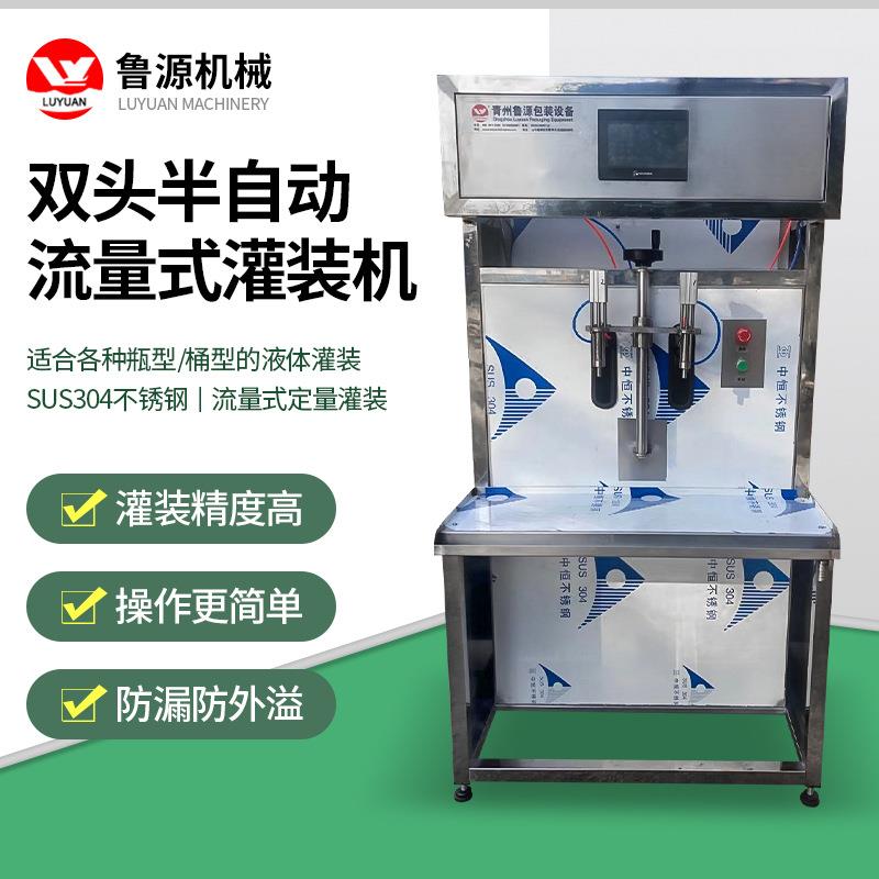 2头小型半自动灌装机 液体肥料润滑油食用油化工桶半自动灌装机