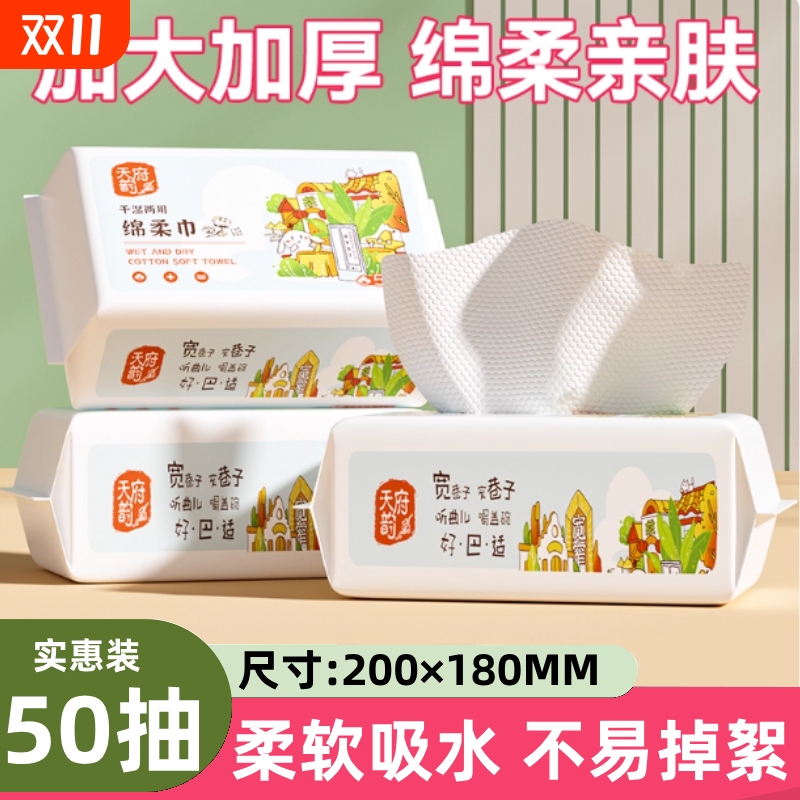 一次性50抽洗脸巾绵柔巾干湿两用不掉絮湿敷巾加厚卸妆巾亲肤天府