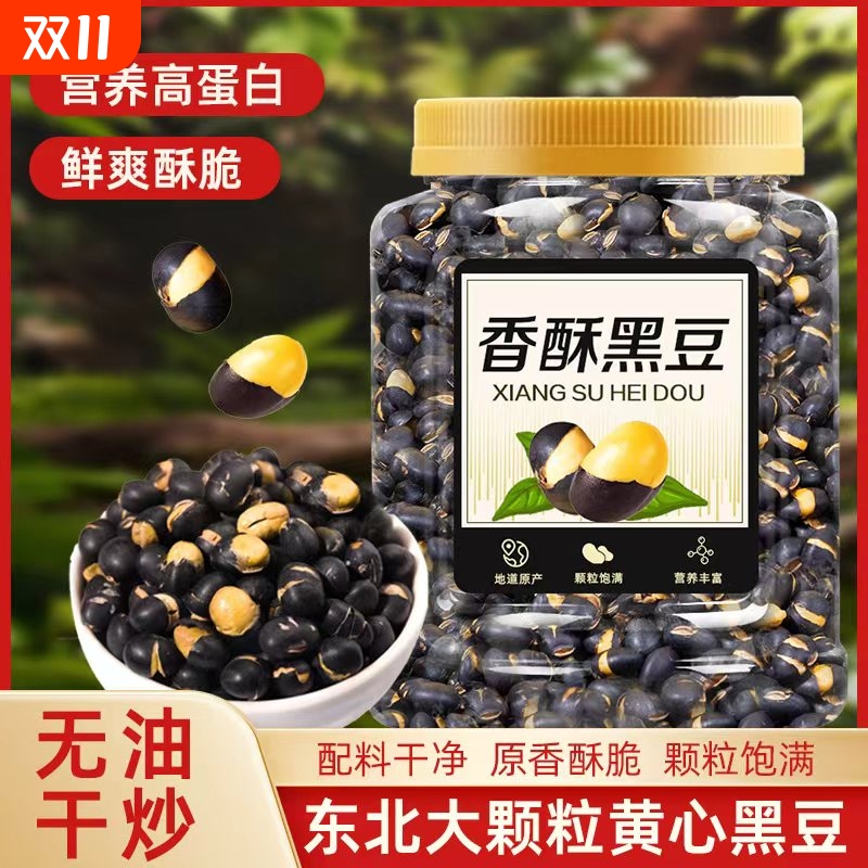 黄芯炒熟黑豆罐装大颗粒盐炒豆子即食零食品无添加高蛋白五谷杂粮