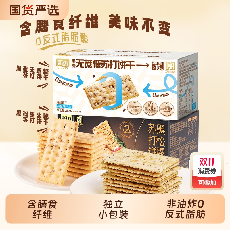 嘉士利黑麦海盐苏打饼干无蔗糖