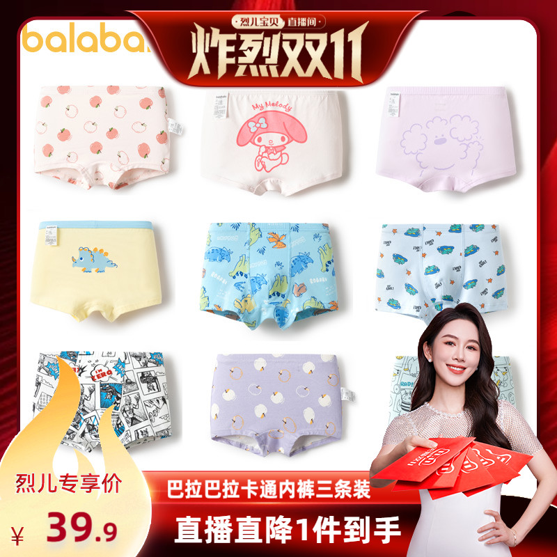 【烈儿炸烈双11】巴拉巴拉儿童内裤棉不夹PP抗菌三条装