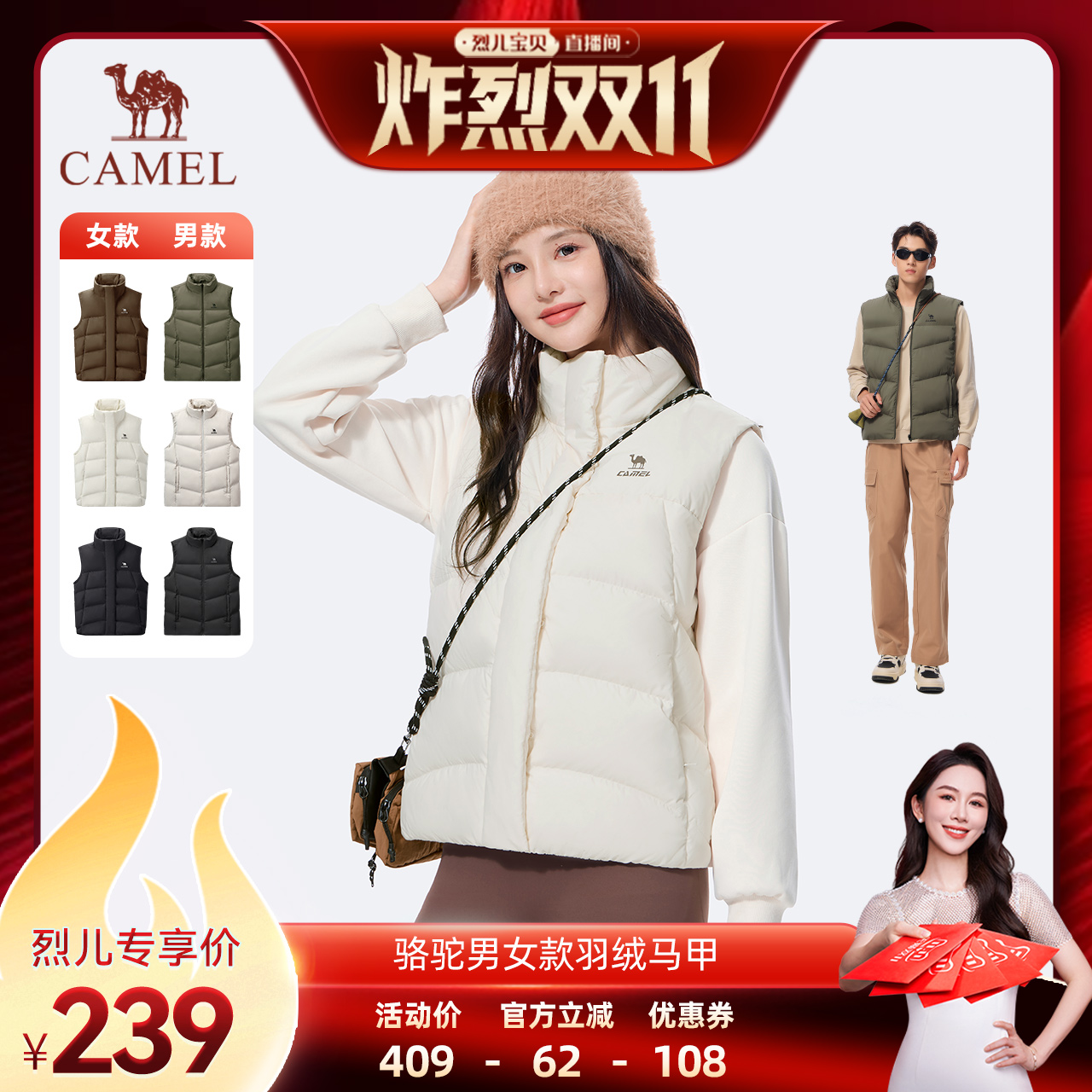 【 付定!烈儿炸烈双11】骆驼男女同款90鸭绒防泼水羽绒马甲